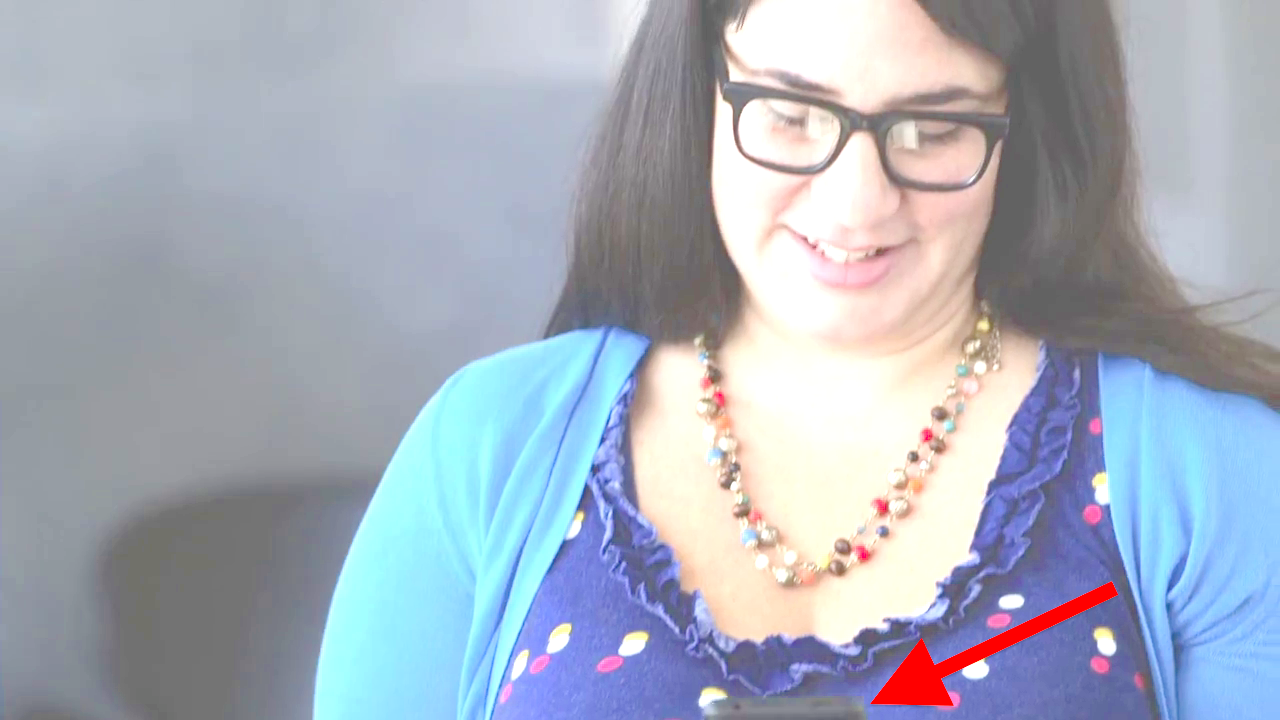 Yep, it's definitely a phone sized device, and you can see her scrolling with her finger in the reflection, so it's a touch screen. Now, what's actually unique about it that separates it from the millions of similar devices, I guess we'll have to wait and see. Perhaps the display stays square to your head? I mean, if you're viewing the screen at a slight angle, it skews the perspective to look straight?